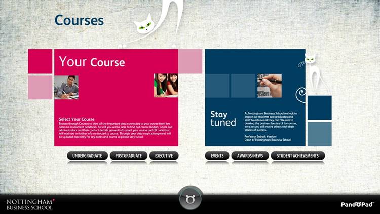 The main challenge was to design the concept and content for our PandoPad solutions that would educate student and provide useful information in a multimedia format. The User interface foundation was our PandoPad® Custom Desktop application that had to be significantly adapted to suit the project requirements.
