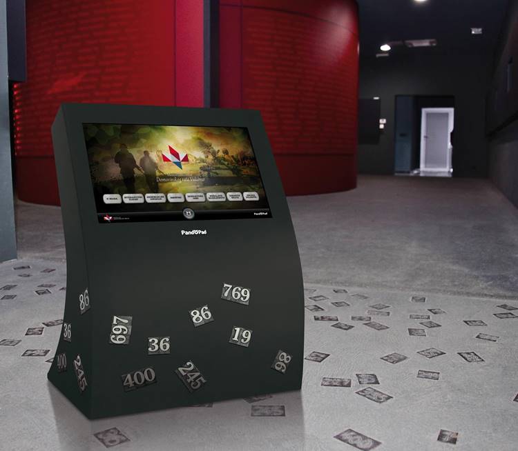 With the application of our products: PandoPad® Manager, PandoPad® Applications, PandoPad® FLOOR unit, and PandoPad® TOTEM unit, all interactive services necessary for informing and preserving the memory of historical events have been realized. Two interactive units for indoor use (32") and one for outdoor use (43") were delivered, with an emphasis on custom housing design.