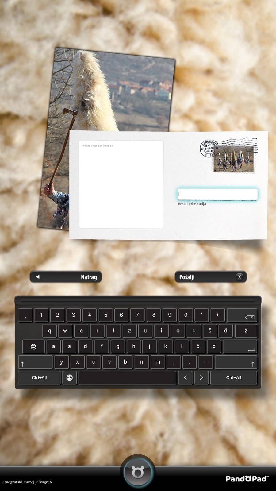 In this example, we see the PandoPad® eCard Selfie application through which users can select one of the offered images, insert a photo of their face and send a virtual / digital postcard using the integrated e-mail system.